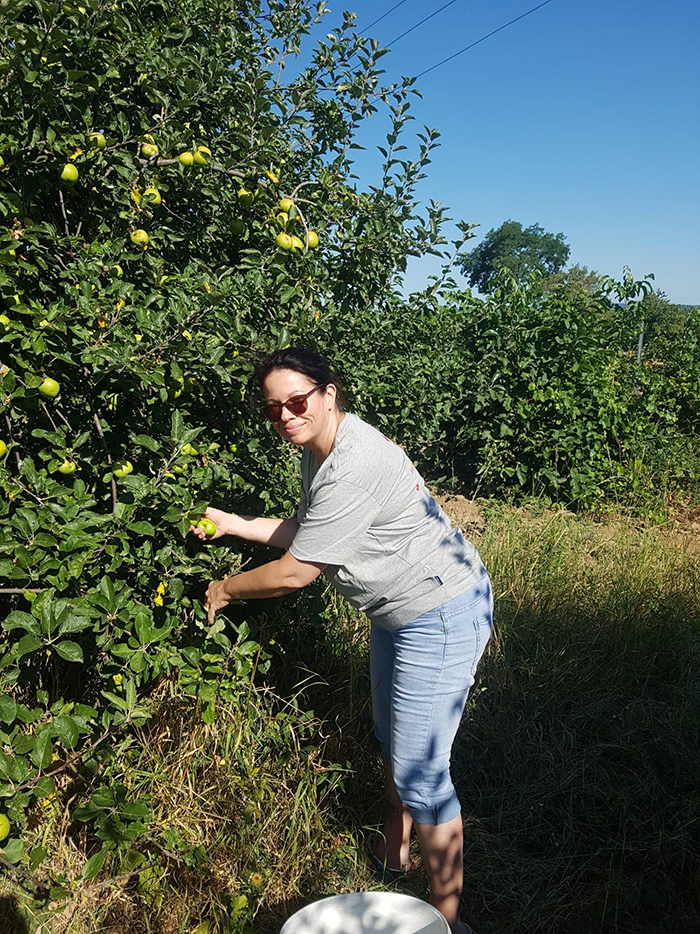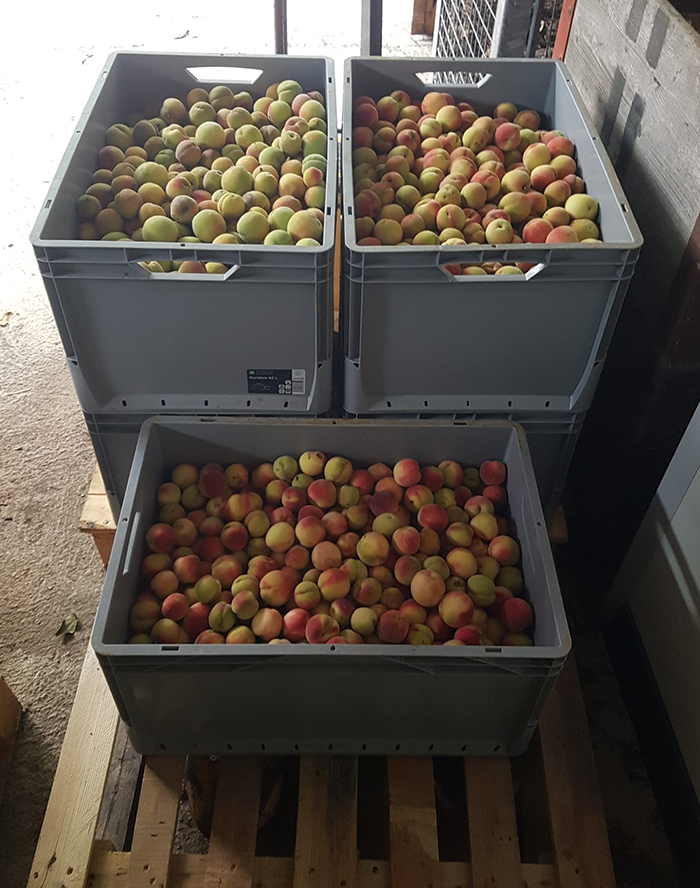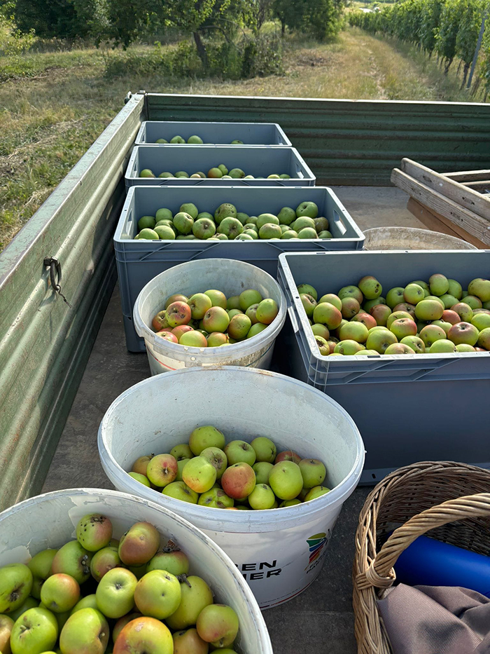 Hierfür war der Einsatz der ganzen Familie gefragt. Unter der Aufsicht unserer Mutter waren wir während der Erntezeit auf der Obstplantage und in unseren Weingärten unterwegs um Früchte zu sammeln. Die Früchte wurden sorgfältig eingemaischt und nach erfolgter Gärung vom Papa gebrannt.