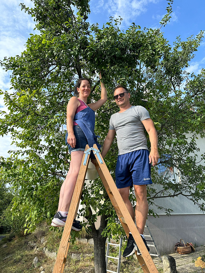 Unterstützt werde ich hierbei von meiner Lebensgefährtin und meiner gesamten Familie. Diese Unterstützung findet sich in jedem unserer Edelbrände wieder. Wir verwenden ausschließlich Obst aus der Region, welches wir teilweise selbst anbauen oder von Freunden und Bekannten zur Verfügung gestellt bekommen. In einem Weinort wie der Freistadt Rust, der nicht zuletzt für seine guten Weine berühmt ist, darf natürlich ein Trester- und Weinbrand nicht fehlen.